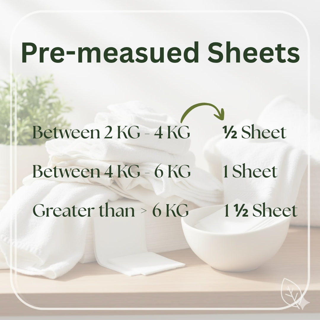 Our laundry sheet is a powerful, concentrated cleaning system. It uses Surfactants to lift dirt and grease, Saponins (from the plant Sapindus Mukorossi) are natural compounds that create foam and have their own gentle cleaning and Bacteriostatic (germ-stopping) properties. Protease Enzymes (Planet based) target and break down tough protein stains like sweat and grass guaranteeing maximum cleaning strength from every wash.Finally, a touch of Glycerin leaves your clothes feeling smooth and soft. Simple, powerful, and clean!